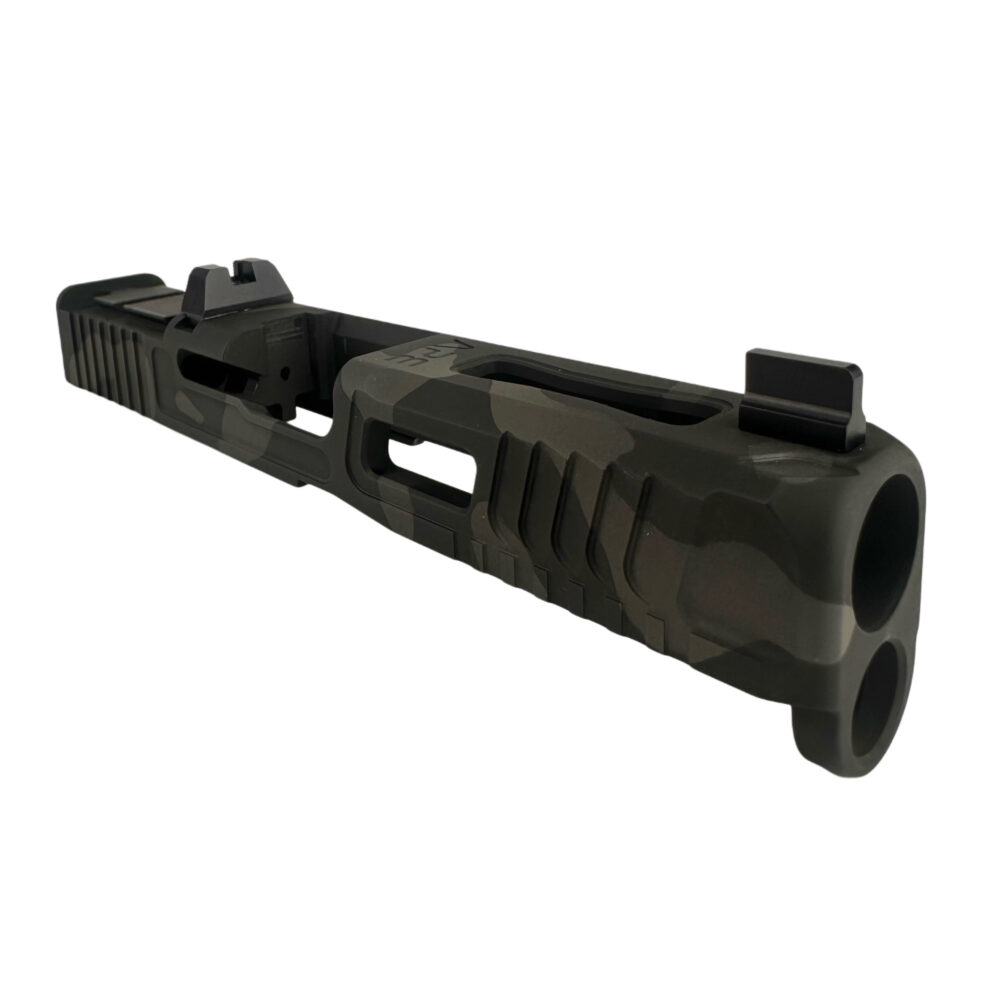 This slide includes suppressor height black front and rear sights pre-installed. We preinstalled channel liners for your convince. Just swap over your factory Glock 19/45 Gen 5 internals, barrel, and recoil assembly.